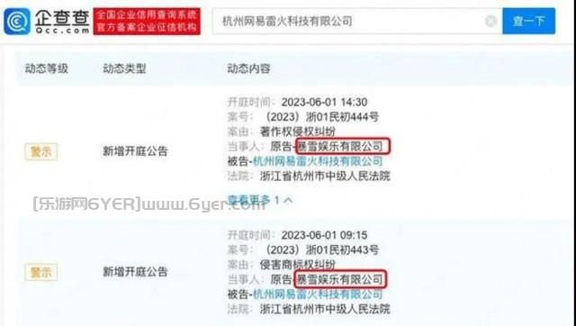 网易虽然与暴雪“离婚”了,但仍然实施这样的背后捅刀行为,无疑令暴雪极为不满。于是在2023年5月份,杭州网易雷火科技有限公司新增两则开庭公告,案由分别为著作权侵权纠纷和侵害商标权及不正当竞争纠纷,原告均为暴雪娱乐有限公司。