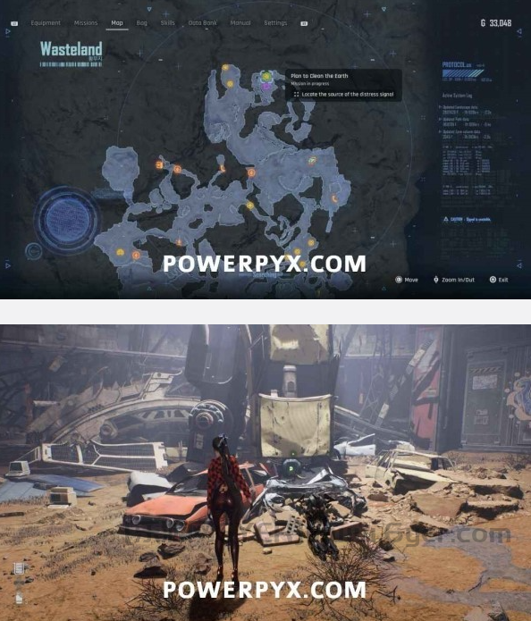 1、进入废土的废品堆放场区域(东侧的大片区域)时此任务会自动触发,地图上堆放场北边会标记一个目标位置(任务开始前会显示感叹号标记)。从通往峡谷的小路前往目标位置,与卡在汽车下的机器人互动。